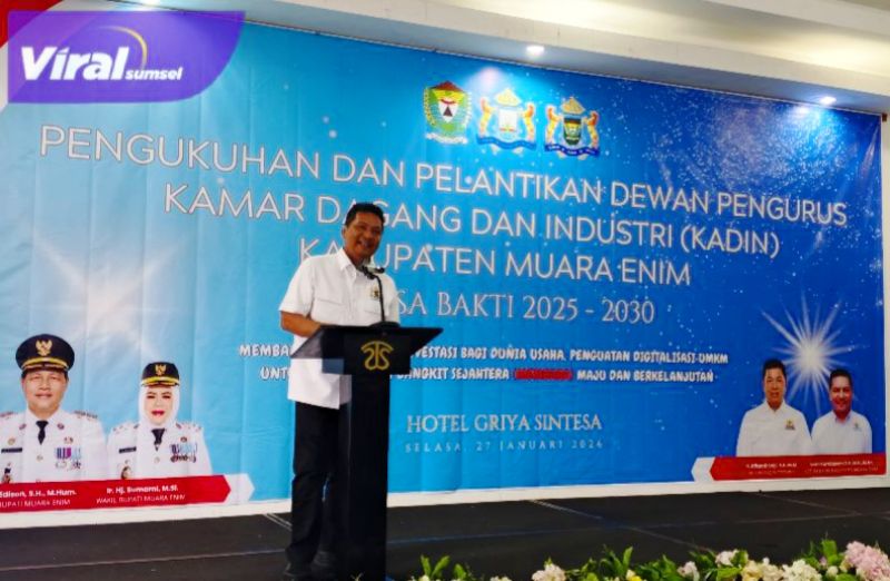 Muara Enim || Viralsumsel.com – Ketua Kamar Dagang dan Industri (KADIN) Provinsi Sumatera Selatan, Affandi Udji, menekankan pentingnya peran KADIN Kabupaten Muara Enim sebagai motor penggerak perekonomian daerah sekaligus mitra strategis pemerintah dalam mendorong percepatan pembangunan dan peningkatan kesejahteraan masyarakat.