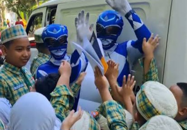 viralsumsel.com, KEDIRI- Siapa bilang makan sayur itu membosankan? Di SD Negeri Tempurejo 1, Kota Kediri, Jawa Timur, anak-anak dibuat heboh oleh Power Rangers versi sopir MBG!