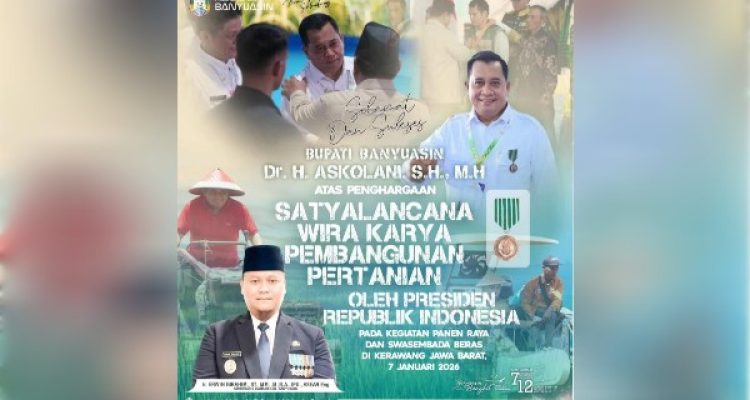 Banyuasin — Bupati Banyuasin Dr. H. Askolani, SH., MH menerima penghargaan Bintang
