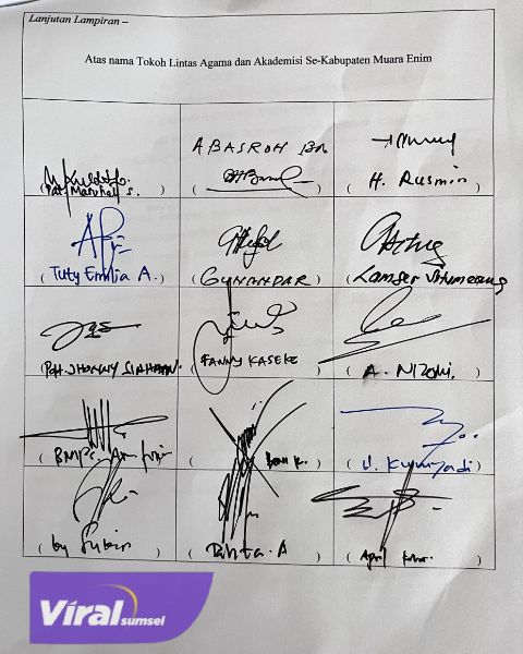 Setelah pembahasan dari berbagai peristiwa yang terjadi, maka para Tokoh Lintas Agama dan Akademisi Se-Kabupaten Muara Enim membuat kesepakatan Bersama, dan di sampaikan Langsung saat Jumpa Pers Oleh H. Abdul Harris Putra di Hotel Griya Sintesa dengan Himbauan yaitu: